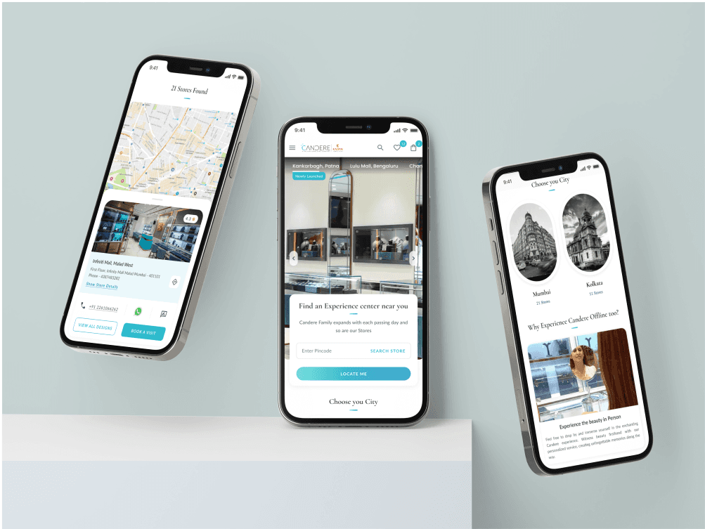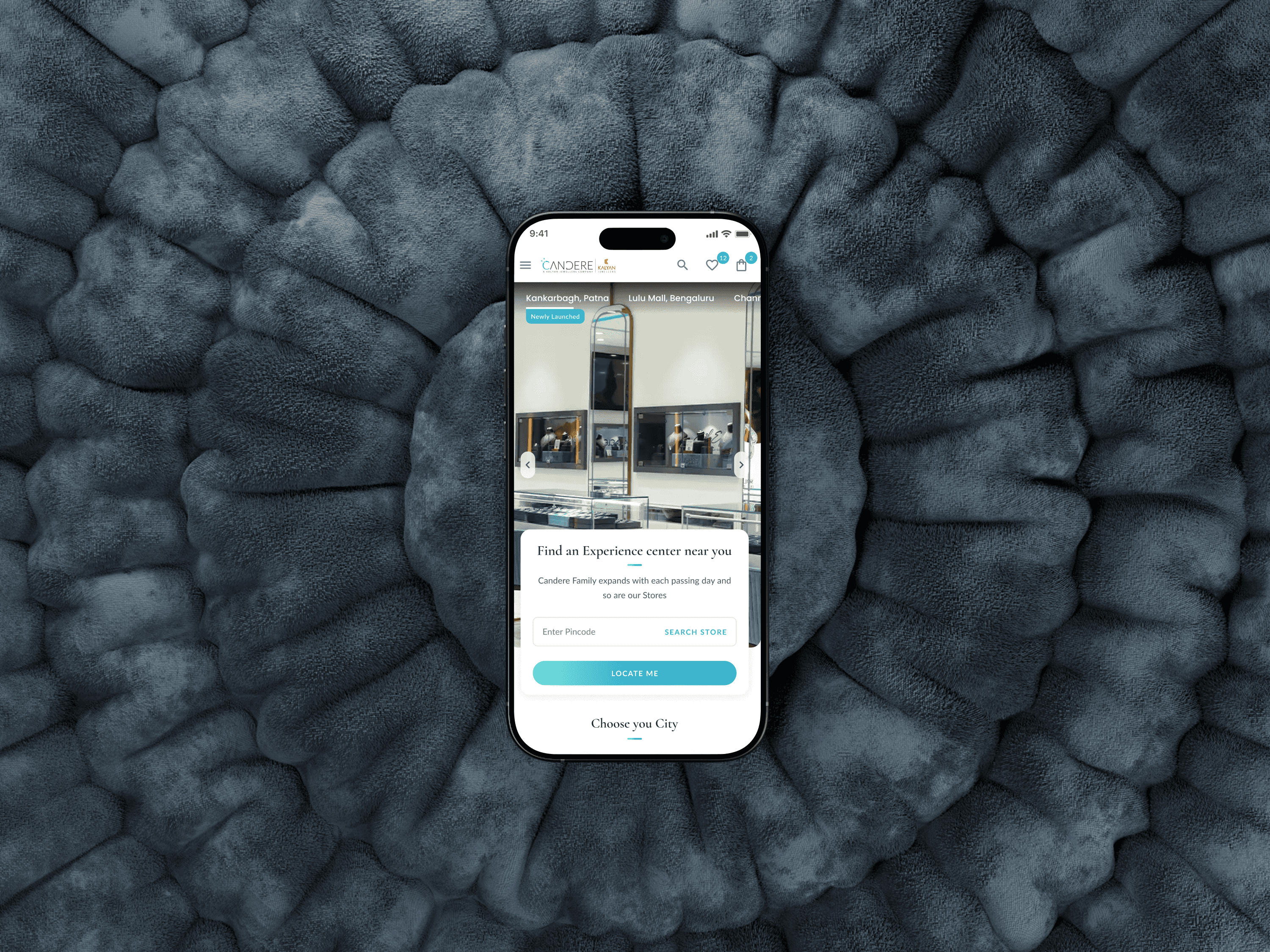 In this project, I focused on designing a dedicated Experience Store page that showcases Candere’s in-store offerings. The process involved understanding business goals, analyzing user needs, researching competitors, and mapping out content structure. I created wireframes to define the layout, followed by high-fidelity UI designs in Figma that aligned with the brand’s premium identity. The design was made responsive and handed off to developers with detailed specifications, followed by stakeholder feedback and final refinements.