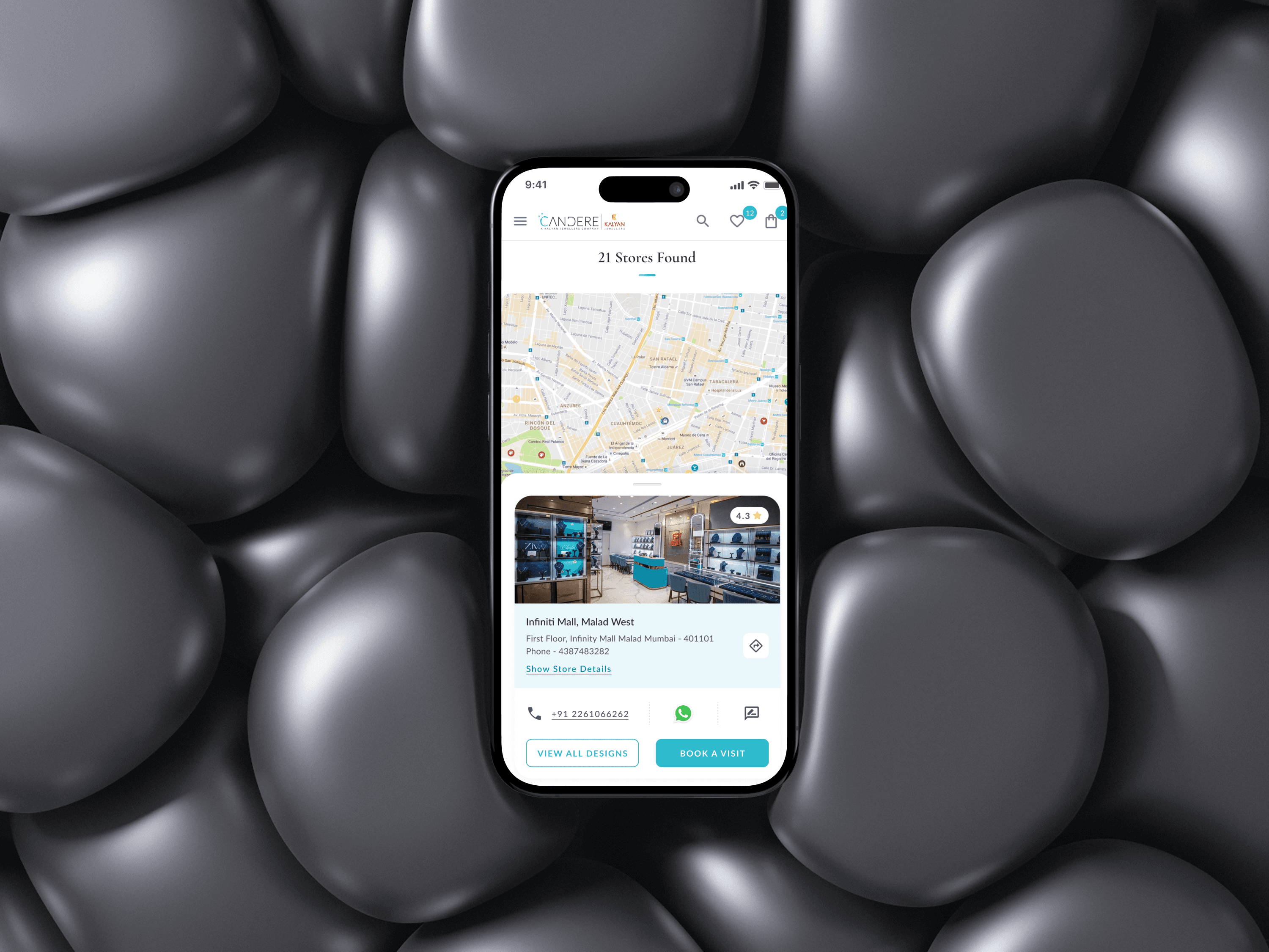 Discover the elegance of Candere by Kalyan Jewellers in person. Enjoy personalized assistance, custom fittings, and exclusive in-store services. Explore our exquisite collections firsthand and find your perfect piece with expert guidance. Visit us today for an unparalleled jewelry shopping experience.